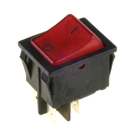 Spínač kolébkový 250V 16A 2x spínací, červeně podsvícený