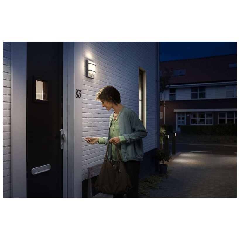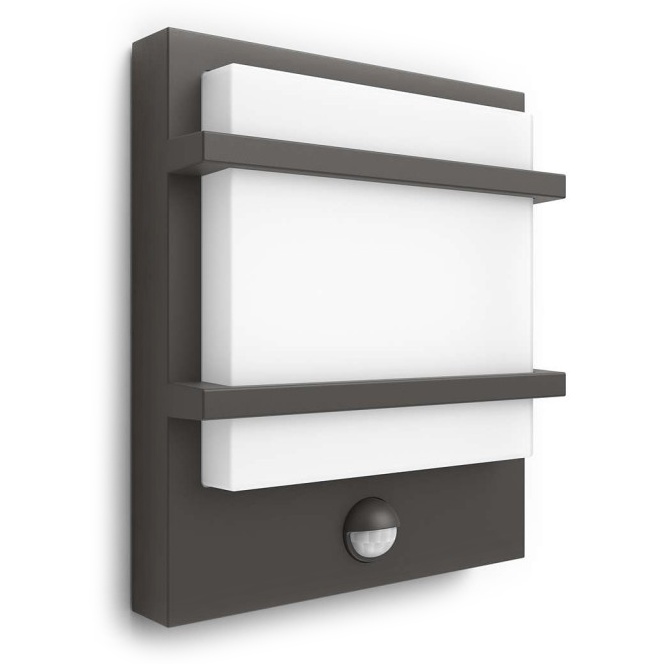 Nástěnné svítidlo s pohybovým IR senzorem Petronia z kolekce moderního osvětlení značky Philips je určeno pro osvícení venkovních prostor díky vysokému krytí IP44, které jej chrání před vlhkostí a stříkající vodou.