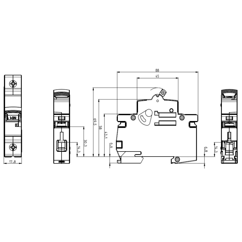 | Jmenovitá vypínací schopnost Icn (EN 60898 a 230 V) | 10 kA |