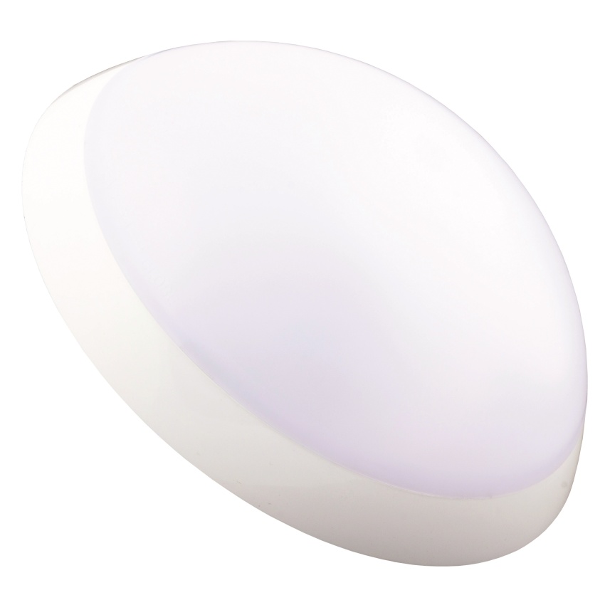 přisazené, kulaté svítidlo s plastovým stínítkem s bílým rámem osazené LED zdrojem se senzorem