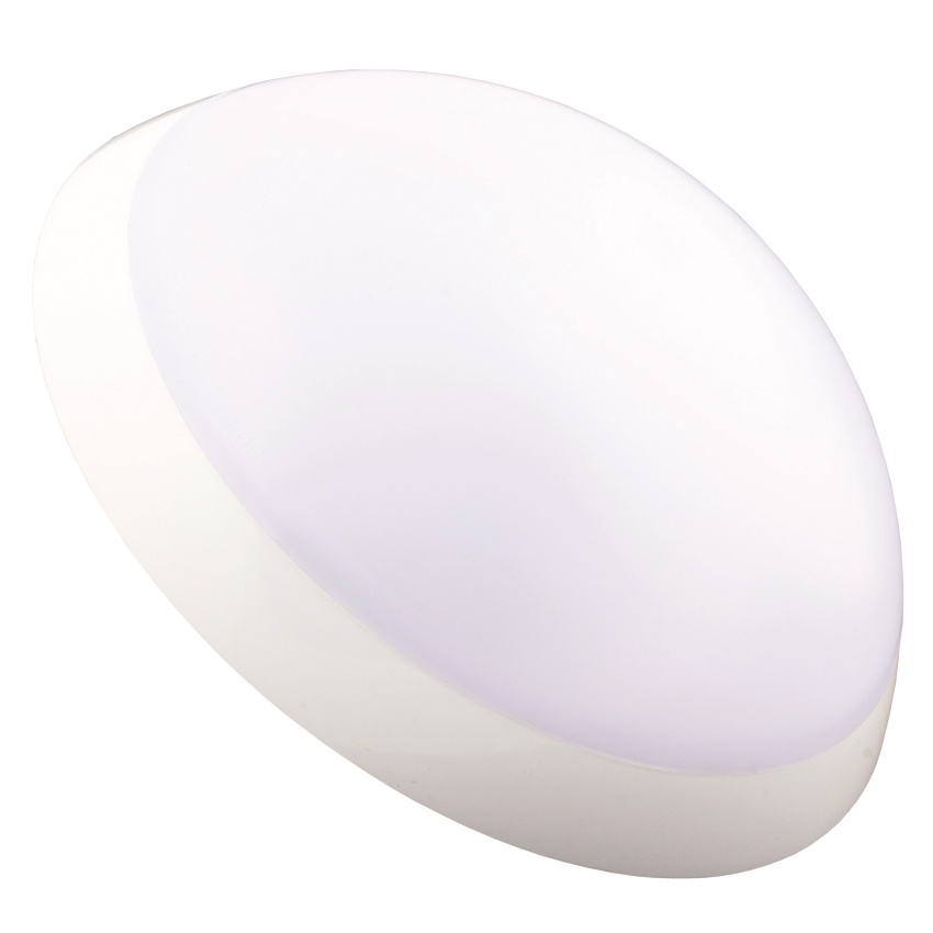 přisazené kulaté svítidlo s plastovým stínítkem s bílým rámem osazené LED zdrojem