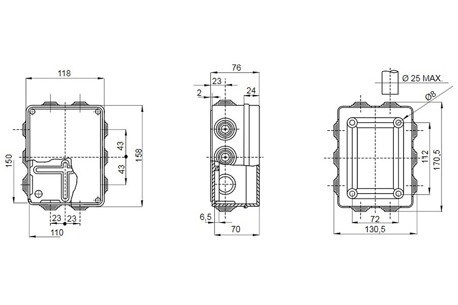 Krabice GW44026 s vývodkou IP55,150x110x70