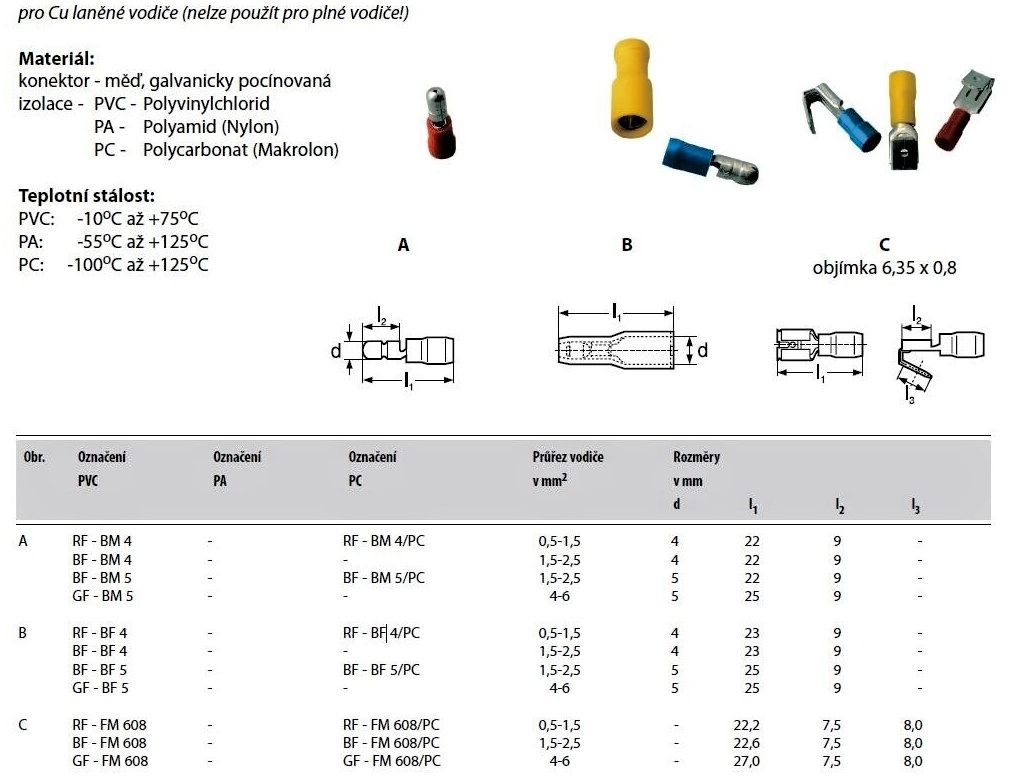 | Jmenovitý průřez | 1.5 - 2.5 mm2 |