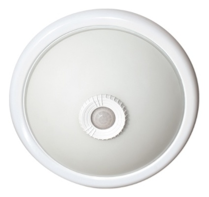 Žárovkové stropní i nástěnné svítidlo na patici E27 s integrovaným PIR pohybovým čidlem. difuzor:mléčné sklo pracuje s LED žárovkami a kompaktními zářivkami těleso svítidla: výlisek z ocelového plechu s práškovým nástřikem