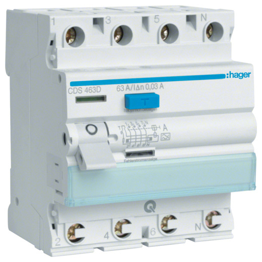 Proudový chránič 4 pól. 40 / 0,03 A, A, 6 kA, bezšroubové svorky, Hager, QuickConnect