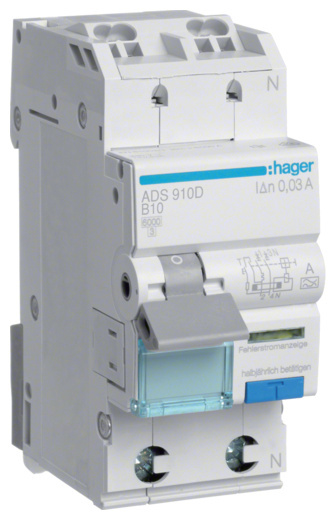 Proudový chránič s nadproudovou ochranou char. B 1+N, 6 kA 0,03 A In=10 A, A, ADS910D