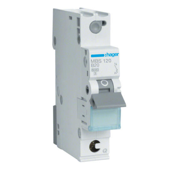 Jistič s jedním pólem, zkratovou vypínací schopností 6 kA a vypínací charakteristikou B, značky Hager. Jedná se o modulární přístroj se systémem quickconnect, který se zapojuje bez použití šroubových svorek a tím zvětšuje bezpečnost a rychlost instalace. Součástí jističe pro ochranu kabelu a vedení před přetížením a zkratem je průhledná klapka pro vložení štítku s popisem.