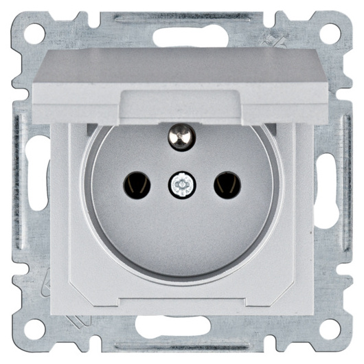 Zásuvka se zemnícím kolíkem a víčkem, IP20, stříbrná mat