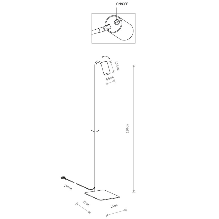 Podlahová stojací lampa v jednoduchém a moderním provedení.
