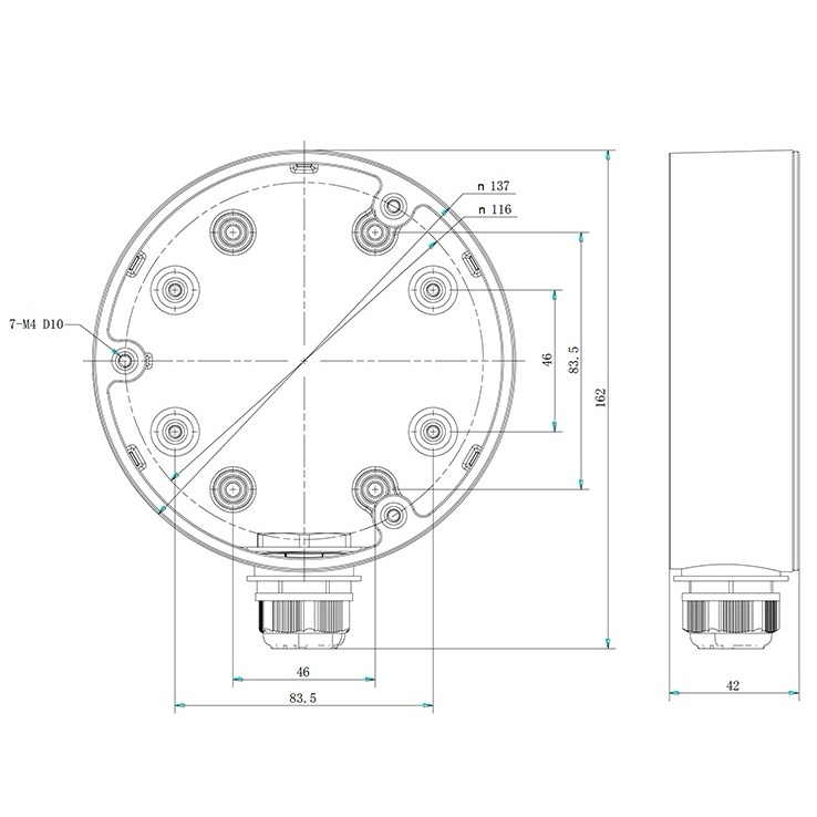 montážní patice pro dome kamery o průměru 135mm, rozměry: průměr 137mm x výška 42mm, bílá barva