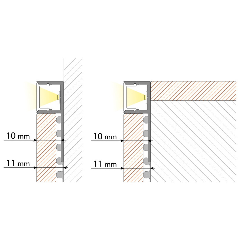 Tento hliníkový profil se nejčastěji instaluje do obkladů a dlažby, je však možné jej použít i s jiným stavebním materiálem (sádrokarton, dřevo, zeď apod.). Hliníkový profil se pokládá přímo do dlažby nebo obkladů. Jako pomocné zajištění jej můžete zafixovat pomocí vrutů, případně vhodným lepidlem apod.