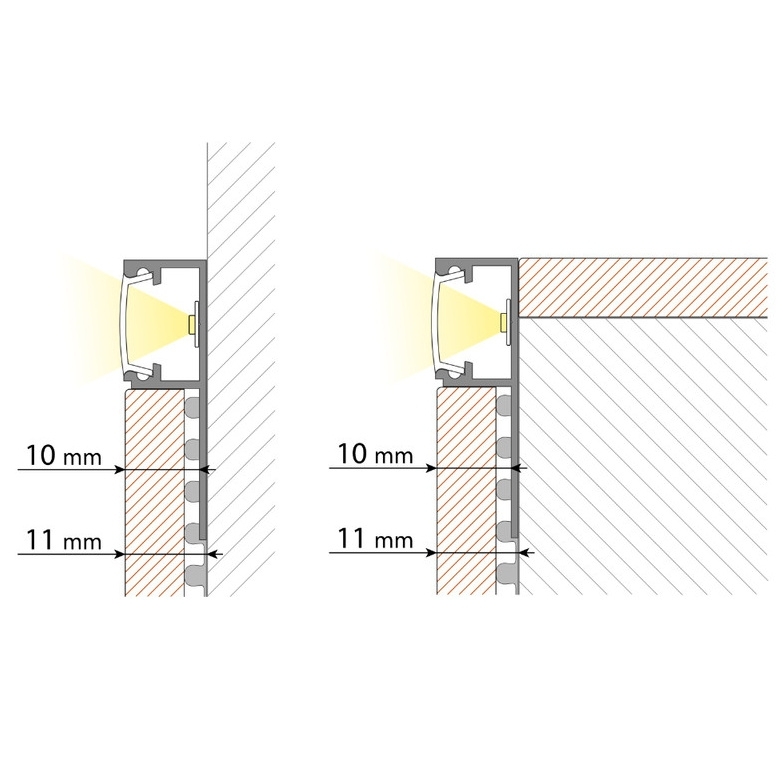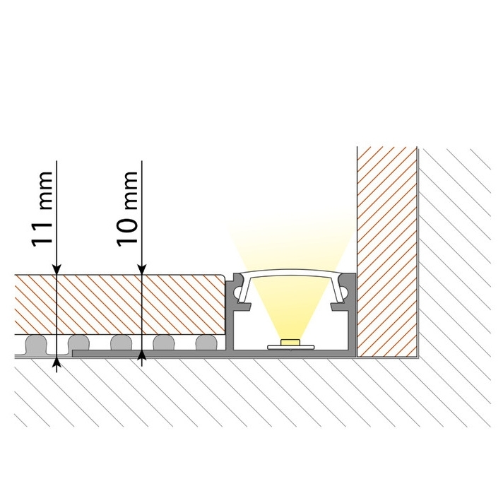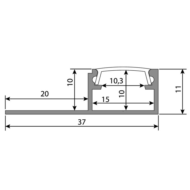 Hliníkový profil pro obklady a dlažbu pro LED pásky, rozměry průřezu cca 37x11mm. Součástí je mléčný difuzor, který lze do profilu nacvaknout. Tento profil je určen pro krytí a chlazení LED pásků do šíře až 14mm a výkonu max. 19,2W/m. Profil lze upevnit pomocí vrutů nebo lepidla. K profilu lze zakoupit také koncovky.
