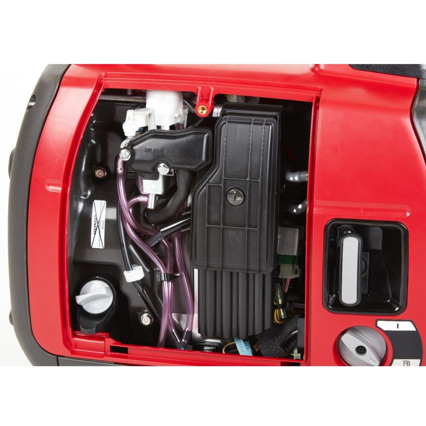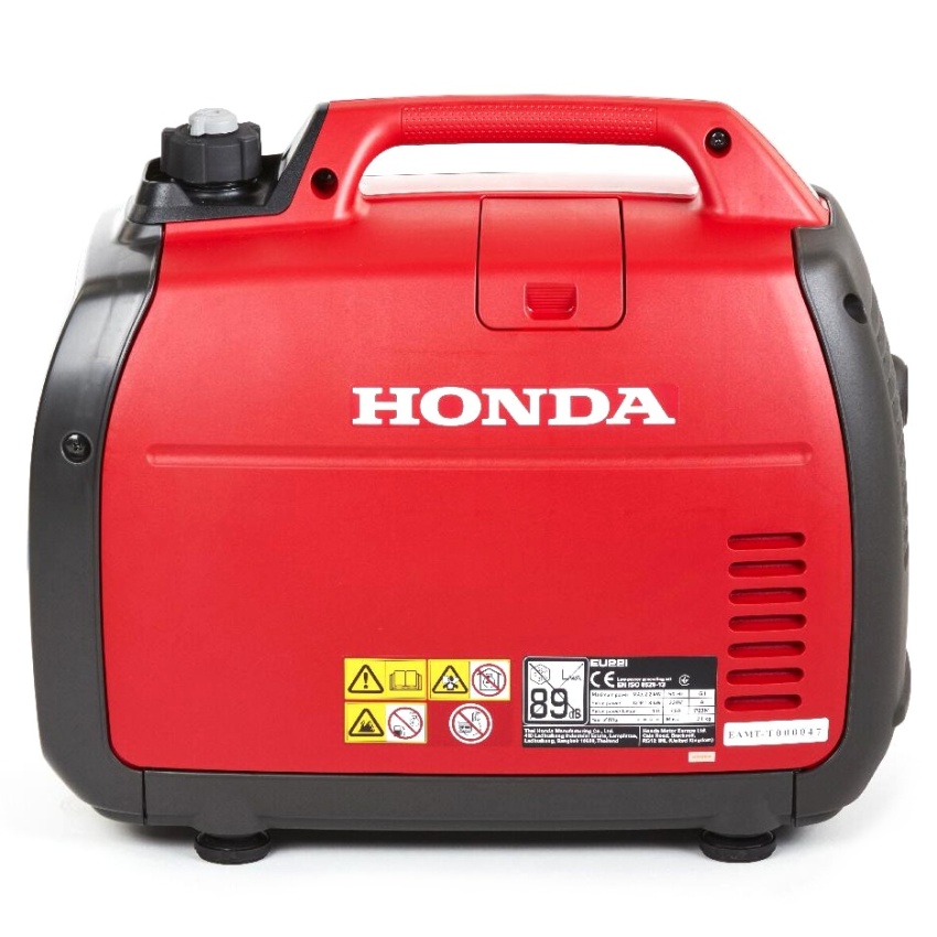 Tato malá, lehká a bezvadně odhlučněná benzínová elektrocentrála střídavého napětí je svým výkonem a kvalitou výstupního napětí určena převážně pro napájení malých spotřebičů typu osvětlení, ručního elektronářadí, monitorů, počítačů, kamerových systémů nebo přístrojů s velmi citlivou elektronikou. Svými kompantními rozměry a nízkou hmotností se hodí jak do pojízdných autodílen, opravárenských, měřících či monitorovacích vozů pro práci v terénu, tak i pro napájení různých spotřebičů na zahradě, v dílně, domácnosti nebo na chatě, lodi nebo v karavanu. Celé soustrojí je v plastovém "kufříku" uloženo v pružných silentblocích a i celá elektrocentrála je postavena na pružných gumových nožkách. Motor je ovládán elektronickou řídící jednotkou, která přesně dávkuje výkon motoru v závislosti na odběru el.proudu. Znatelně se tak snižuje spotřeba paliva a hlučnost. Naopak se podstatně prodlužuje provozní doba na jedno tankování a životnost elektrocentrály. Elektrocentrála poskytuje i stejnosměrné napětí 12V pro nabíjení automobilových baterií. Pro to je nutné dokoupit speciální dobíjecí kabel. Ovládání elektrocentrály je velice snadné a jednoduché. Na ovládacím panelu elektrocentrály naleznete kromě dvou zásuvek Schuko (16A 230V) s tepelnými jističi, také zásuvku pro 12V, 8,3A s tepelnou pojistkou, kontrolku chodu (zelená) a mazání (červená), kontrolku přetížení (červená) a přepínač režimu automatu ovládání motoru ECO-THROTTLE. Stačí natankovat, elektrocentrálu postavit na vodorovnou plochu, nastartovat zatažením za rukojeť ručního startéru, počkat pár vteřin na ustálení chodu motoru a do příslušné zásuvky připojit napájený spotřebič. Elektrocentrála splňuje veškeré nároky na elektrickou bezpečnost a je opatřena ochrannými prvky jako je ochrana motoru proti úniku oleje nebo alternátoru proti přetížení. V případě přetížení elektrocentrály se aktivuje červená výstražná kontrolka přetížení na ovládácím panelu a automaticky dojde k odpojení elektrického výstupu, přičemž motor neustále běží. Stačí odpojit spotřebič, vypnout motor a po několika vteřinách opět motor nastartovat. Dojde k "resetu" řídící jednotky a vše je opět v pořádku. Spotřebič, který elektrocentrálu přetížil už nepoužívejte a použijte spotřebič s příkonem, odpovídajícím výkonu elektrocentrály. Lze však pomocí speciálního kabelu propojit dvě identické elektrocentrály EU22i a zdvojnásobit tak možný napájecí výkon. Konstrukce "kufříku" je dostatečně robustní a pevná nekroutí se a spolehlivě tlumí působení vibrací od motoru na podklad. Snižuje se tak hlučnost elektrocentrály a práce je potom příjemnější. Údržba elektrocentrály je zcela nenáročná a spočívá v základní údržbě benzínového motoru.