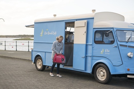 Lehká kufříková elektrocentrála EU 22: model, jednofázové elektrocentrály s invertorem. Patentovaná technologie invertoru umožnila Hondě vyrobit kompaktní a lehký generátor malých rozměrů, ale vysokého výkonu s vyladěnou a stabilní křivkou průběhu výstupního napětí pomocí přesné elektroniky. Výkonný alternátor pohání profesionální průmyslový motor řady GX 120 s lehkým startem a to vše úhledně "zabaleno" do líbivého designu odhlučněné kapotáže.