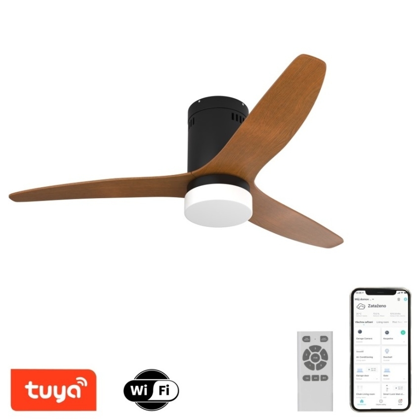 <P>Chytrý ventilátor VENTO s LED osvětlením, odpovídá modernímu trendu spojení Smart funkcí s dokonalým designem. <BR>Funkce ventilátoru oceníte po celý rok a navíc VENTO má dopravdy šmrnc.<BR>VENTO osvěží místnost nejen v horkých letních dnech, ale opačný režim otáčení, zajistí cirkulaci vzduchu shora dolů, a tak lze využít i ve dnech chladnějších, kdy rozproudí teplý vzduch pod stropem do místnosti..<BR>Dva režimy otáčení - jeden osvěžuje místnost v horkých dnech, druhý otepluje místnost při chladnějším počasí.<BR>Rychlost otáčení v rozmezí hodnot 1-5 mění čerstvý vánek ve svěží vítr. Osvěžení, které oceníte v jakékoliv místnosti od ložnice, přes obytné zóny až po kancelář. Ventilátor má velmi tichý chod, při spuštění vydává pouze příjemný rytmický zvuk, který není nijak rušivý.<BR>Ventilátor a intergrované LED světlo, lze ovládat na dálku v telefonu, pomocí aplikace Immax NEO PRO, nebo dálkovým ovladačem. Spínaní světla a ventilátoru je na sobě nezávislé.<BR>Nastavit lze: rychlost otáčení, směr otáčení dobu spuštění. <BR>Odstín světla lze zvolit v aplikaci, 3000K teplý bílý, 4000K přírodní nebo 6000K studený odstín světla.<BR>Vento využívá WI-fi propojení na platformě Tuya.</P> <P><STRONG>Technické parametry:</STRONG><BR>Dálkové ovládání: ano (baterie 12V A23 není součástí balení)<BR>Protokol: Tuya Wi-fi<BR>Materiál: kov, meď, ABS, plast<BR>Barva svítidla: černá/dřevo<BR>Rozměry: D130 x 29,5cm <BR>Barva světla: 3000K, 4000K, 6000K<BR>Příkon svítidla : 18W<BR>Příkon motoru: 26W <BR>Světelný tok: 1500 lm <BR>Doba svícení: 50 000 hod <BR>Vstupní napětí zdroje: AC 200-240V 50-60HZ<BR>CRI(Ra) Index podání barev: >80 (denní světlo má hodnotu Ra 100) <BR>Obsah balení: ventilátor, dálkový ovladač, uživatelský návod</P> <P>Baterie do dálkového ovládání: 1x 12V A23 (není součástí balení)</P>