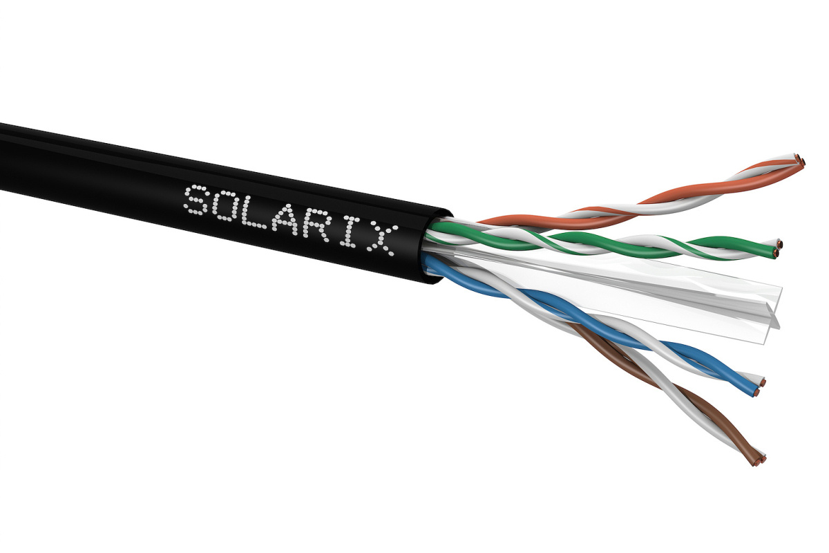 Instalační kabel Solarix s označením SXKD-6-UTP-PE je spolehlivý venkovní nestíněný kabel kategorie 6 který je určený pro provoz ethernetových protokolů, včetně 2.5GBASE-T a 5GBASE-T. Konstrukce kabelu je U/UTP s plastovým křížem, který zajišťuje maximální oddělení párů od sebe po celé délce kabelu. Typ pláště je UV stabilní PE s třídou reakce na oheň Fca a stupněm krytí IP67. Vodiče kabelu jsou vyrobeny z kvalitního měděného drátu s čistotou mědi 99,97%. Kabel bez problémů splňuje požadavky z mezinárodních standardů ISO/IEC 11801, EN 50173 a ANSI/TIA 568.2-D. Stejně jako ostatní kabely Solarix, je i kabel SXKD-6-UTP-PE značen metráží po 1 m v rozsahu od 0 do 500 m. Kabel je dodáván na vysoce pevné dřevěné cívce, na které jsou uvedeny všechny nezbytné produktové informace, včetně čárových kódů, výrobní šarže, popisu a nejdůležitějších technických parametrů. Při instalaci do země doporučujeme vždy použít HDPE chráničku.