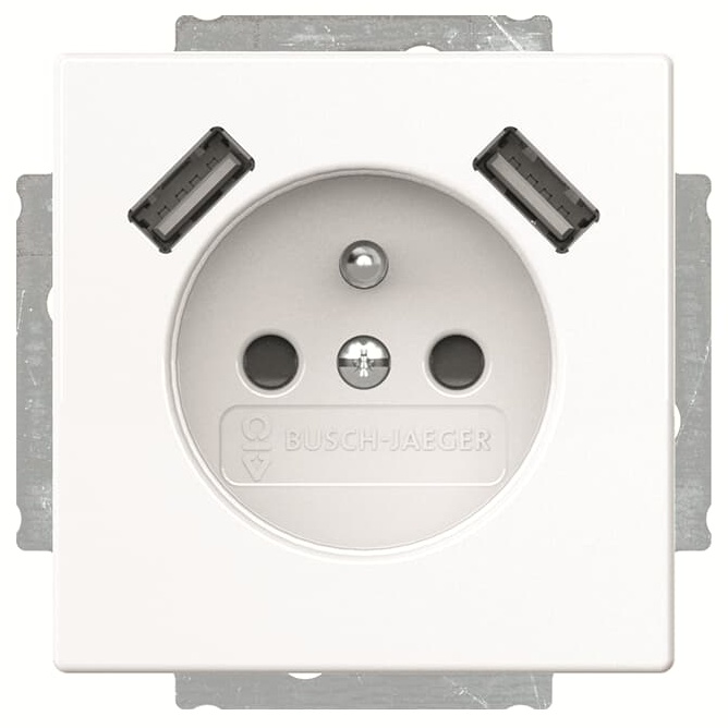 Zásuvka jednonásobná s ochranným kolíkem, clonkami a USB nabíjením