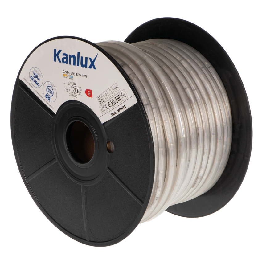 Kanlux GIVRO LED je bezpečný a pohodlný světelný had, způsob připojení sekcí, zajišťuje spolehlivost a komfort používání. Had GIVRO je díky vysokému stupni krytí IP65 chráněn proti vnikání prachu a vlhkosti a jeho odolnost proti UV záření zaručuje dlouhotrvající vlastnosti. Je k dispozici ve třech délkách (15 m, 30 m, 50 m) a šesti barevných provedeních – teplá (3000K), neutrální (4000K), studená (6500K), dále červená, zelená a modrá. Had Kanlux GIVRO LED lze vzájemně propojovat až do délky 100 metrů a průchozí napájecí zdroj usnadňuje vytváření velkých instalací. V případě potřeby ho je možné zkrátit, ale pro samostatné použití je vhodný pouze díl zakončený zástrčkou a odříznutý konec by měl být zkončen GIVRO END CAP. Mezi další příslušenství patří propojovací kabel GIVRO-PR SET (150 cm, IP44, zakončený vidlicí) a GIVRO-PR SET W/O PLUG (150 cm, IP65, bez vidlice), koncovky GIVRO END CAP a držáky GIVRO HOLDER (10 ks v balení) pro snadnou instalaci světelného hadu.