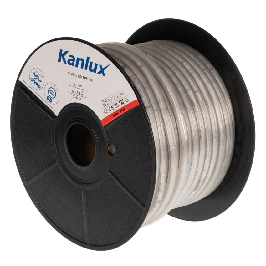 Kanlux GIVRO LED je bezpečný a pohodlný světelný had, způsob připojení sekcí, zajišťuje spolehlivost a komfort používání. Had GIVRO je díky vysokému stupni krytí IP65 chráněn proti vnikání prachu a vlhkosti a jeho odolnost proti UV záření zaručuje dlouhotrvající vlastnosti. Je k dispozici ve třech délkách (15 m, 30 m, 50 m) a šesti barevných provedeních – teplá (3000K), neutrální (4000K), studená (6500K), dále červená, zelená a modrá. Had Kanlux GIVRO LED lze vzájemně propojovat až do délky 100 metrů a průchozí napájecí zdroj usnadňuje vytváření velkých instalací. V případě potřeby ho je možné zkrátit, ale pro samostatné použití je vhodný pouze díl zakončený zástrčkou a odříznutý konec by měl být zkončen GIVRO END CAP. Mezi další příslušenství patří propojovací kabel GIVRO-PR SET (150 cm, IP44, zakončený vidlicí) a GIVRO-PR SET W/O PLUG (150 cm, IP65, bez vidlice), koncovky GIVRO END CAP a držáky GIVRO HOLDER (10 ks v balení) pro snadnou instalaci světelného hadu.