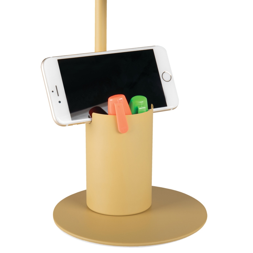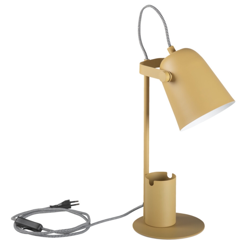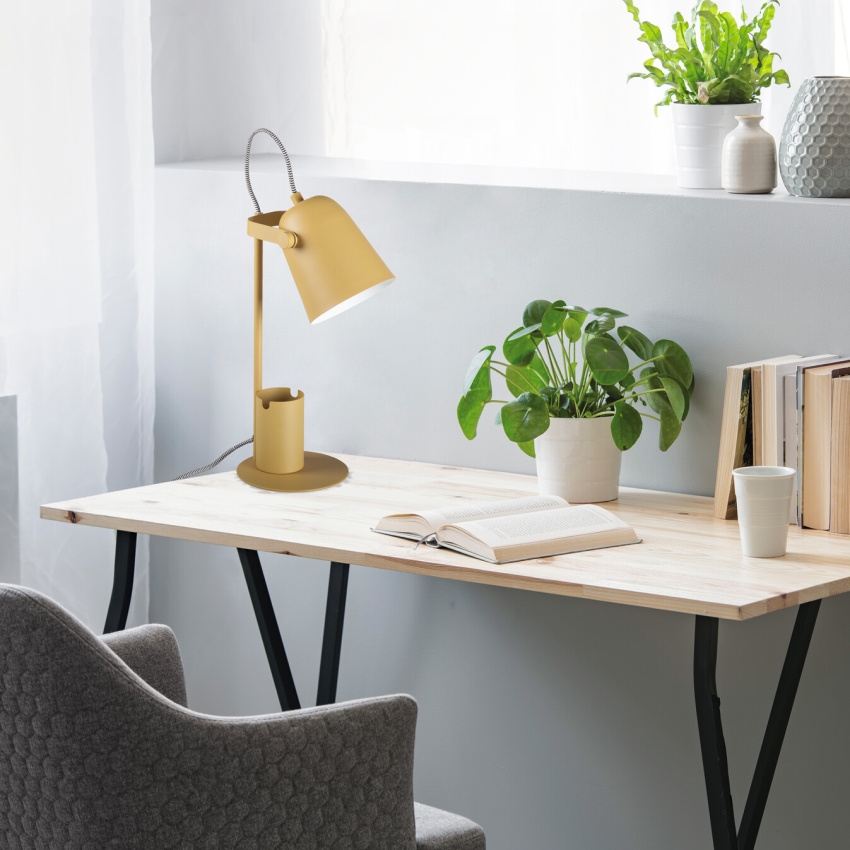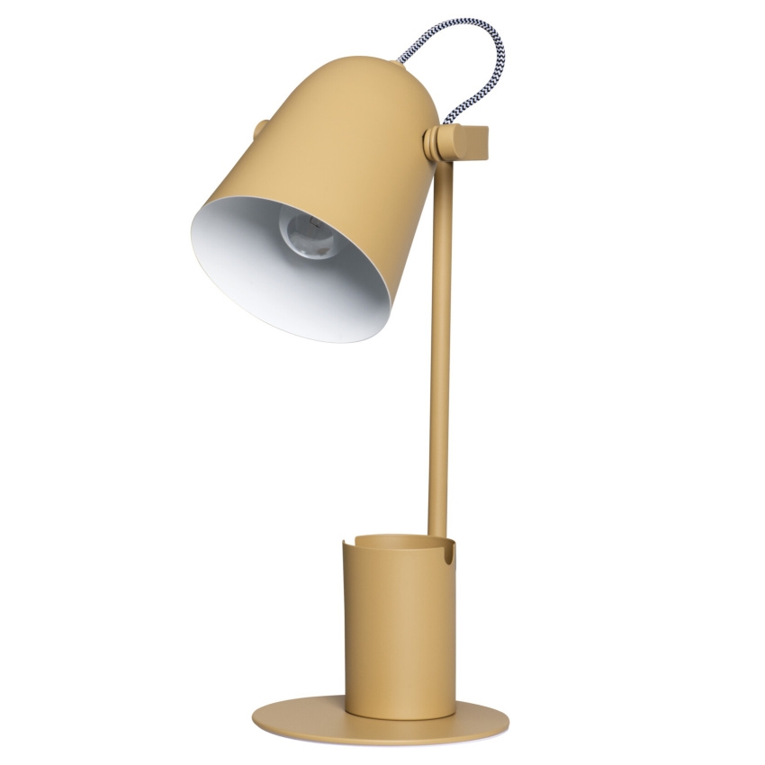 Kancelářská stolní lampa RAIBO E27 - Kanlux RAIBO je módní retro stolní lampa. Je k dispozici ve 4 pastelových barvách a také v oblíbené černé a bílé. V základně je zabudovaný organizér s úchytem, do kterého můžete vložit telefon, pera nebo brýle. Velké stínidlo, do kterého lze namontovat žárovku s paticí E27, má široký rozptyl světla. Je zde vidět retro vliv, ale také smysl pro detail a solidní zpracování (ocel). Pozornost jsme věnovali i spodní straně lampy a přidali jsme pěnovou podložku, aby lampa nepoškrábala stůl.