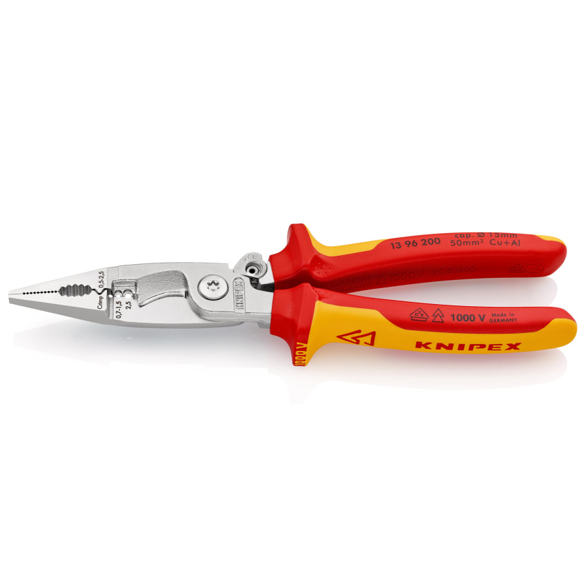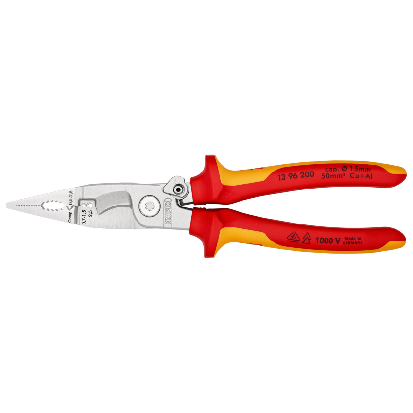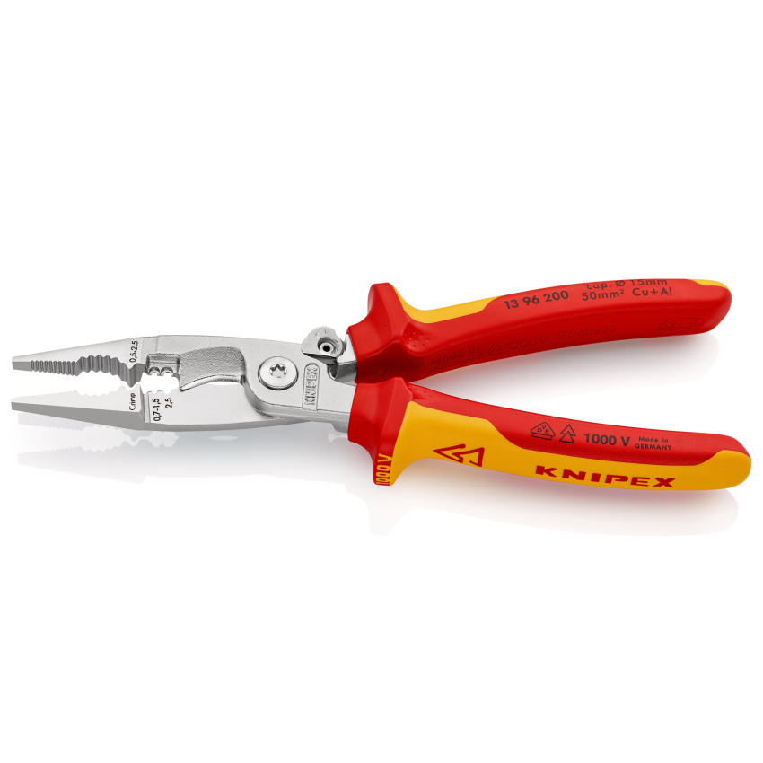 Elektrikářské kleště se štípačkou na kabely, VDE;0.7...1.5 mm²;200 mm
