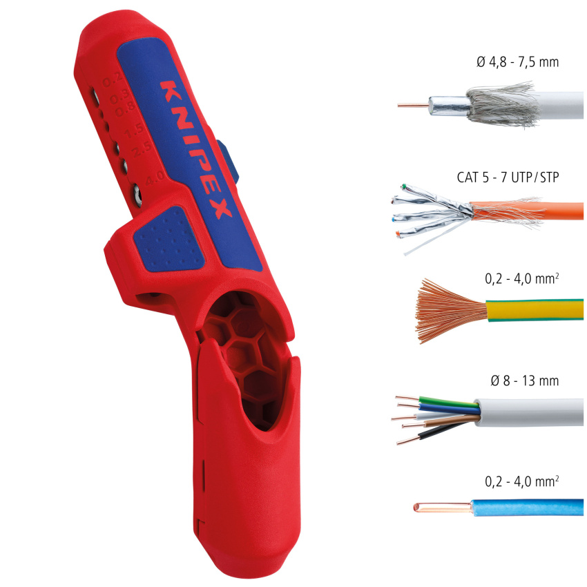 Knipex 16 95 01 SB - Nůž odizolovací pro kabely kruhového průřezu pr. 8,0-13,0 mm, plastové pouzdro, ErgoStrip