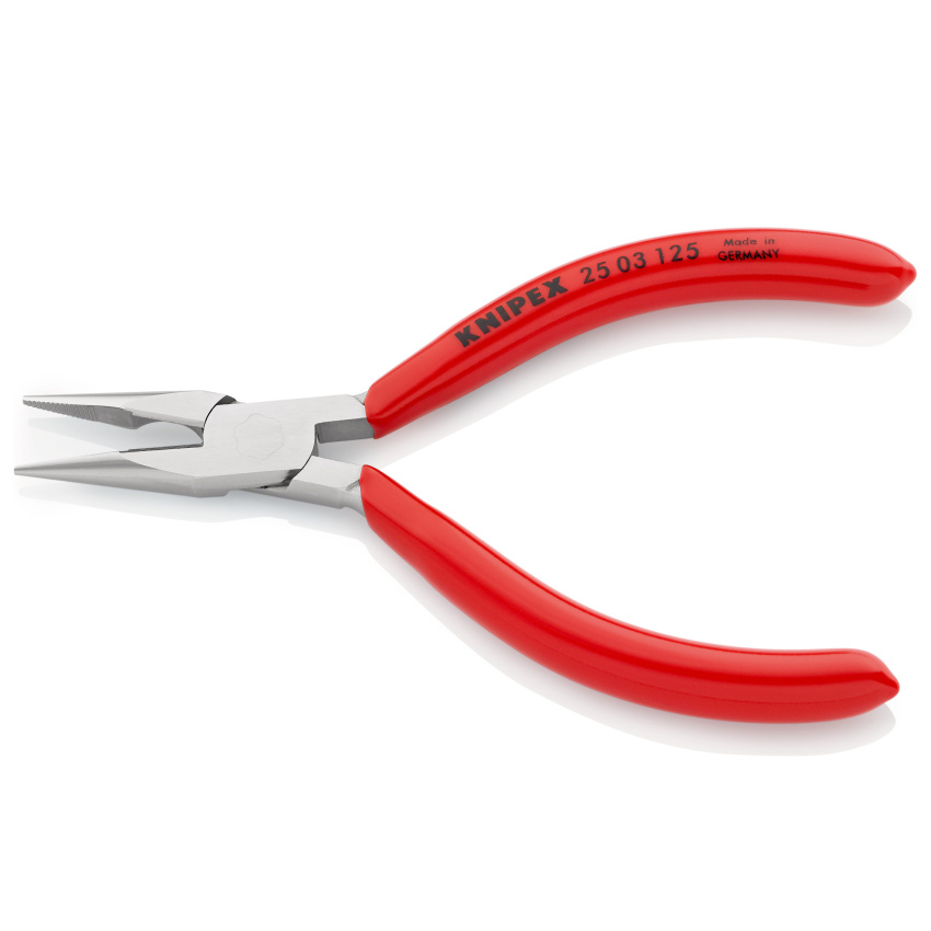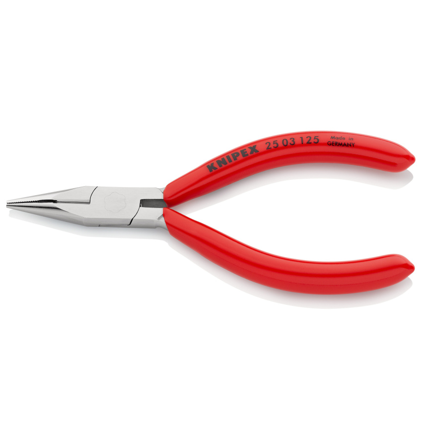 Knipex 25 03 125 - Kleště s dlouhými čelistmi 125mm rovné, půlkulaté špičaté, chromované, rukojeti potažené plastem