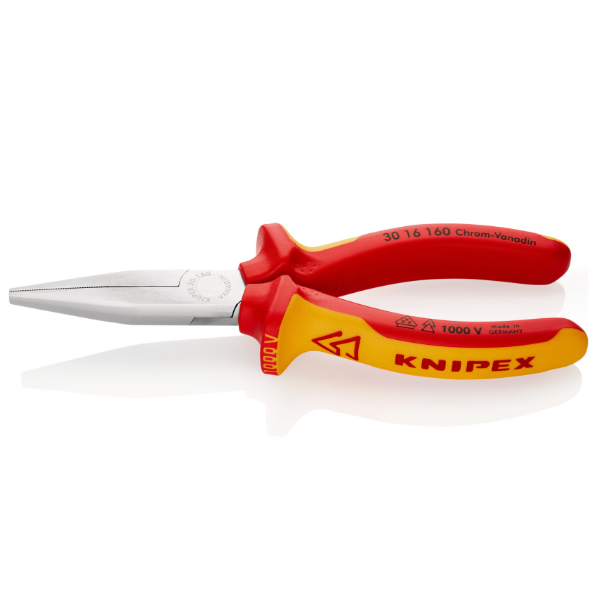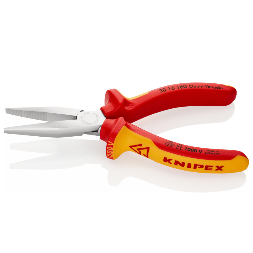 Knipex 30 16 160 - Kleště s dlouhými čelistmi 160mm plochými, chromované, izolované 1000V VDE, BI-plast rukojeti, LANGBECK