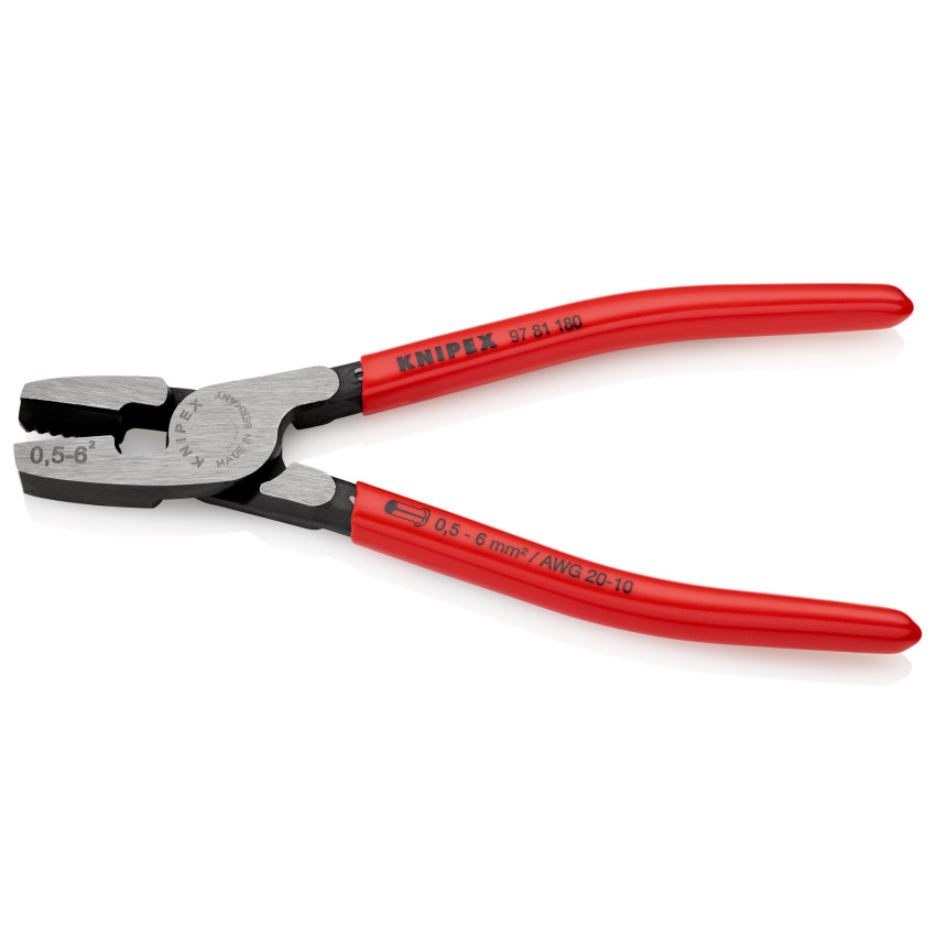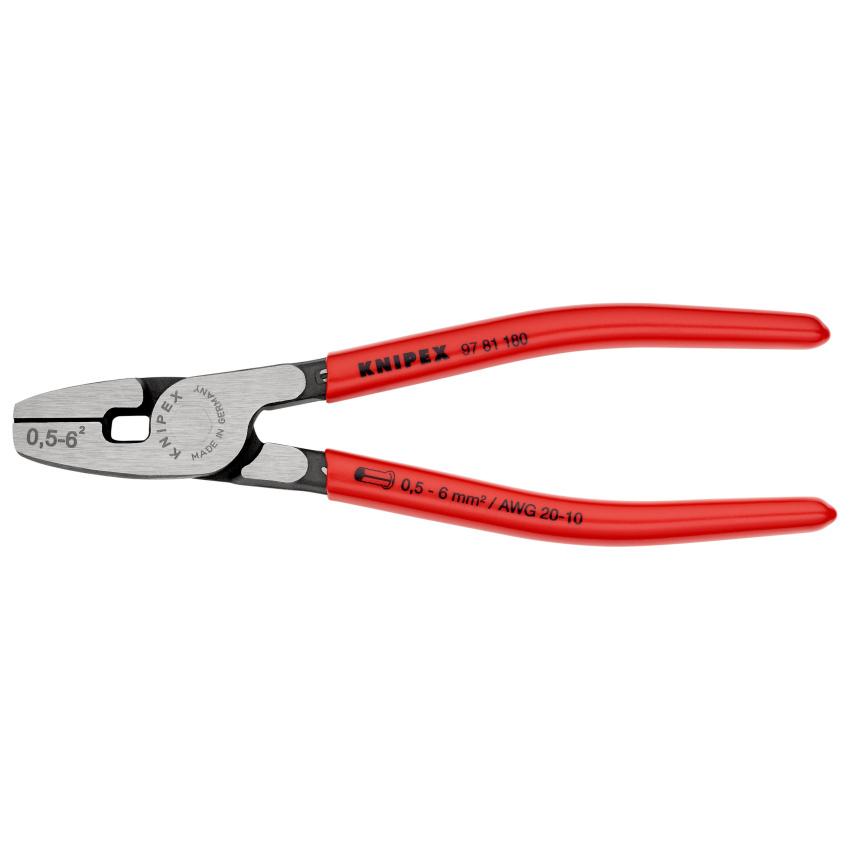 Knipex 97 81 180 - Kleště lisovací na dutinky pr. 0,5-6,0mm2, AWG 23-13, čelní, leštěné, rukojeti potaženy plastem