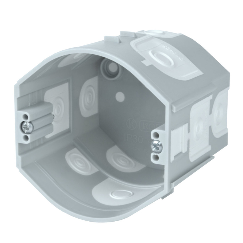 KPR 68/D - KRABICE PŘÍSTROJOVÁ, konfigurace KA, barva SVĚTLE ŠEDÁ, balení - 66 ks - možnost spojení v souvislou řadu s roztečí 71 mm, krabice lze spojovat s krabicemi KP 68/D, vstupní otvory vyrobeny z pružného materiálu, zajištěna vzduchotěsnost prostupu i při vloženém kabelu nebo trubce, vhodná pro nízkoenergetické nebo pasivní domy, přístrojové šrouby jsou opatřeny dvojchodým závitem pro snadnější instalaci