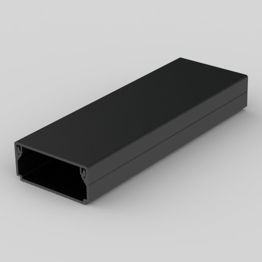 Lišta hranatá 40x20, černá, 2 m, karton. Klasický tvar. Určena pro montáž na stěnu, nebo na strop. Dvojitý zámek víka zvyšuje tuhost lišty a zajišťuje pevnější fixaci víka.