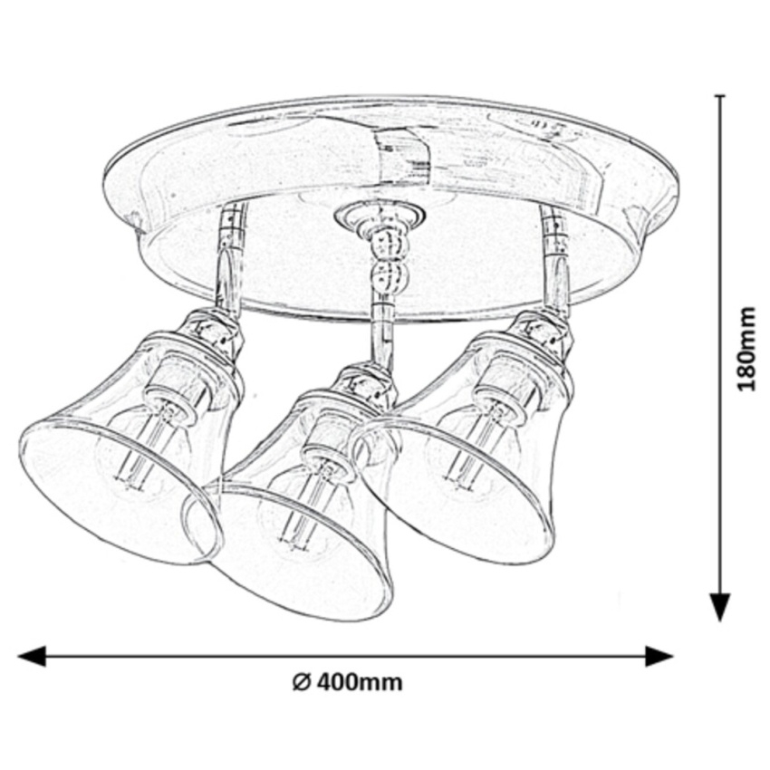Koupelnové stropní svítidlo Antoine s 3 žárovkami v klasickém stylu doporučujeme těm, kdo hledají elegantní doplněk k zařízení své koupelny. Kovové svítidlo chromové barvy je doplněno o průhledné skleněné stínítka ve tvaru zvonku. Svítidlo Antoine lze upevnit na stěnu pomocí velkého zaobleného dekorativního podstavce a lze jej používat se třemi žárovkami o výkonu každé až 40W. Typ patice je E14. Pomocí hlav svítidla hledících do různých směrů můžete efektivně osvětlit vaši koupelnu. Pro svítidlo Antoine si můžete vybrat světelné zdroje vyzařující přirozené nebo teplé bílé světlo. Krytí IP44 tohoto svítidla zajišťuje jeho ochranu proti vniknutí předmětů do průměru 1 mm a proti stříkající vodě z jakéhokoli směru. Rozměry tohoto stropního svítidla s 3 žárovkami jsou následující: šířka 400 mm, vzdálenost od stěny 180 mm. Tento model je dodáván bez světelného zdroje.
