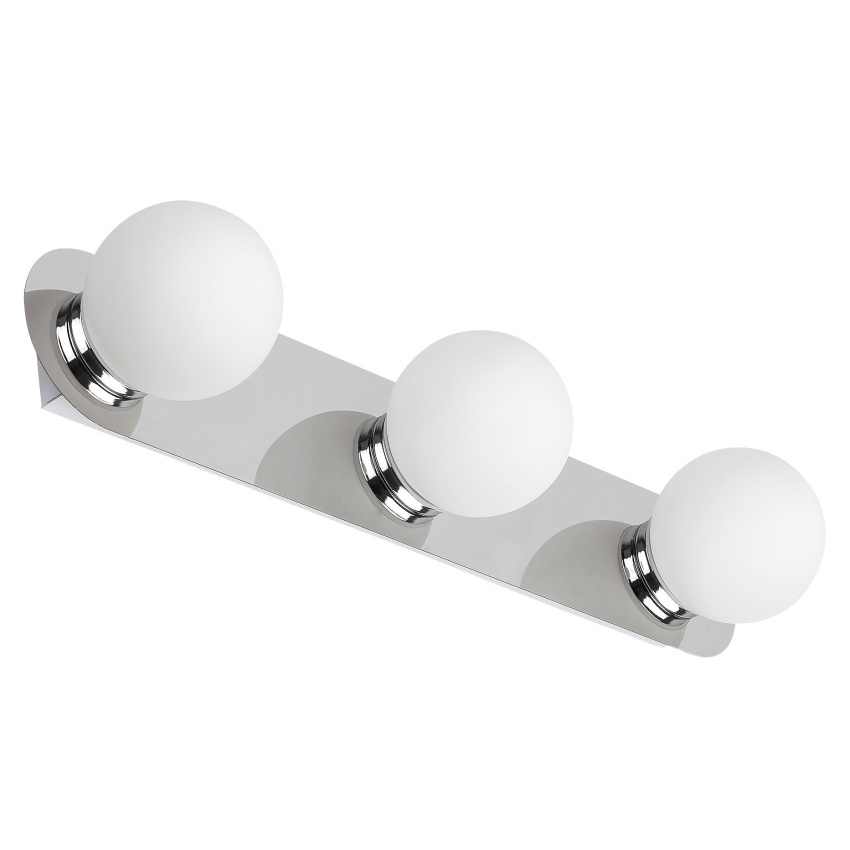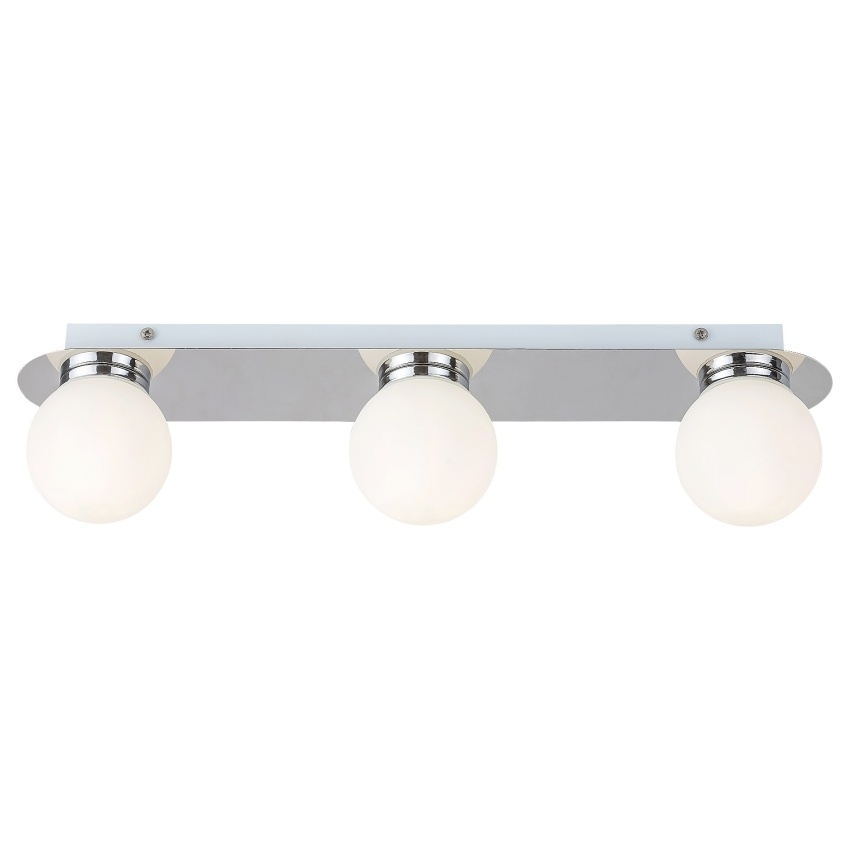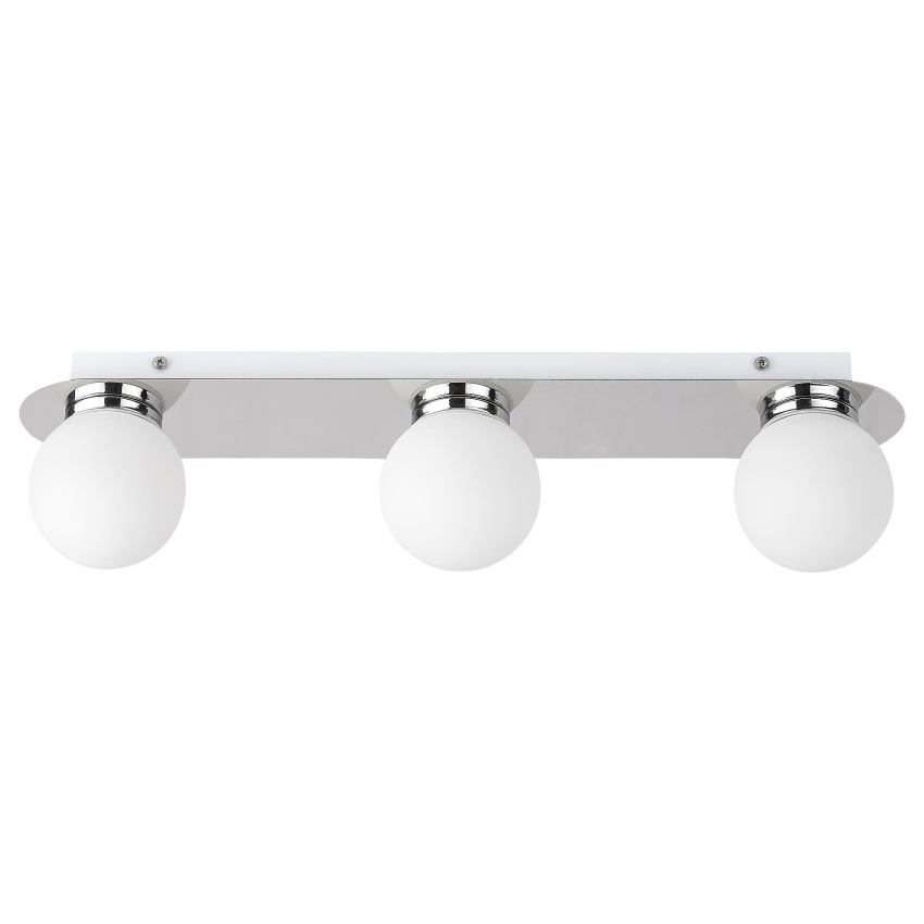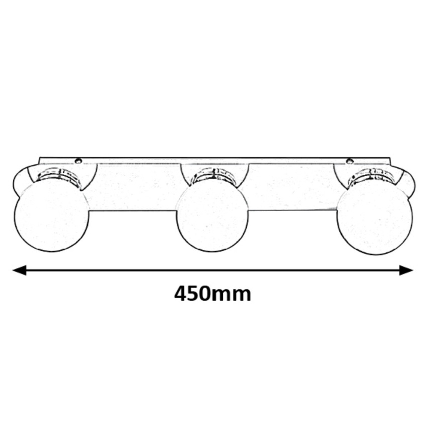 Doporučujeme trojité koupelnové stropní svítidlo Becca s čistým designem a kombinací chromové a bílé barvy těm, kteří dávají přednost kulovým tvarům. Koupelnové svítidlo lze namontovat nad umyvadlo nebo zrcadlo nebo kdekoli na stropě koupelny. Stropní svítidlo je možné používat pouze se třemi energeticky úspornými světelnými zdroji s výkonem do 28 W, závitem typu G9. Chcete-li vytvořit moderní efekt, vyberte přírodní zdroj bílého světla. Kovový a skleněný model má krytí IP44, což zajišťuje jeho ochranu před pronikáním předmětů s maximálním průměrem 1 mm a proti stříkající vodě z jakéhokoliv úhlu. Celková šířka trojitého stropního svítidla je 450 mm. Koupelnové svítidlo Becca se dodává bez zdroje světla.