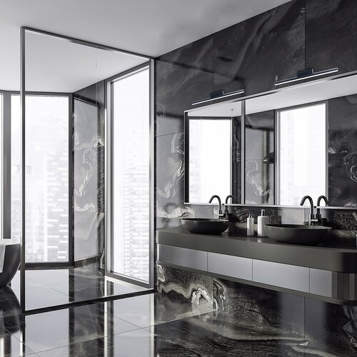 Moderní koupelnové nástěnné svítidlo Evan bude skvělou volbou pro osvětlení prostoru nad umyvadlem. Matné černé svítidlo vyrobené z kovu a hliníku je doplněno o bílé plastové stínidlo. Svítidlo obsahuje vestavěný LED světelný zdroj s výkonem 18W, světelným tokem 1850 lumenů a životností 20 000 hodin. Světelný zdroj má barevnou teplotu 4000 K a podle toho vyzařuje přirozené bílé světlo. Svítidlo Evan má krytí IP44, které zajišťuje ochranu proti vniknutí předmětů do průměru 1 mm a proti stříkající vodě z jakéhokoli směru. Rozměry tohoto koupelnového nástěnného svítidla jsou následující: šířka 630 mm, výška 75 mm, vzdálenost od stěny 100 mm. Na tento model poskytujeme 5letou záruku.