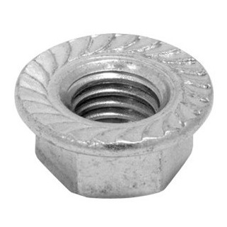 Matice s přírubou o velikosti M12 s ozubením podle normy DIN 6923, vyrobené z nerezové oceli typu A2, označené jako ML12.