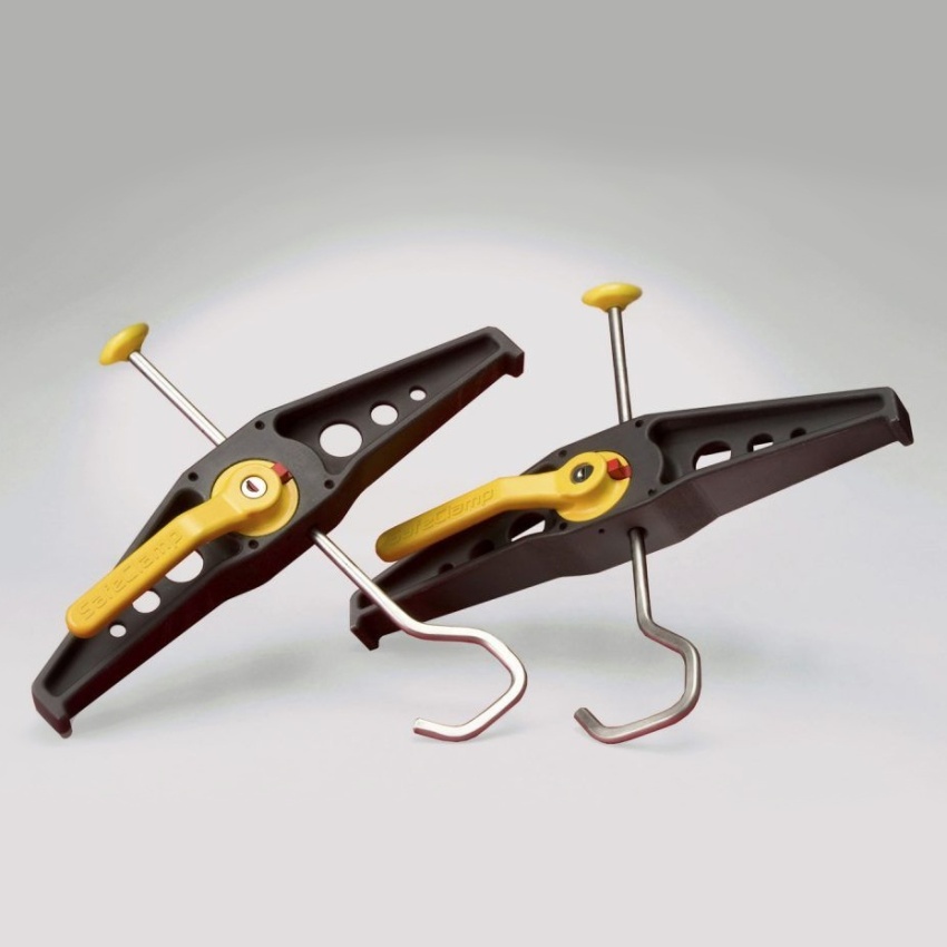 Rhino SafeClamp spojuje sílu, rychlost a styl a představuje revoluční systém upínání žebříků. Použití kompozitní konstrukce nosníku a kotevního háku z nerezové oceli nabízí vysokou pevnost a zároveň vynikající odolnost proti korozi. Inovativní metoda upínání jedním dotykem zajišťuje, že operace je pětkrát rychlejší než u tradičních šroubových žebříkových upínačů.