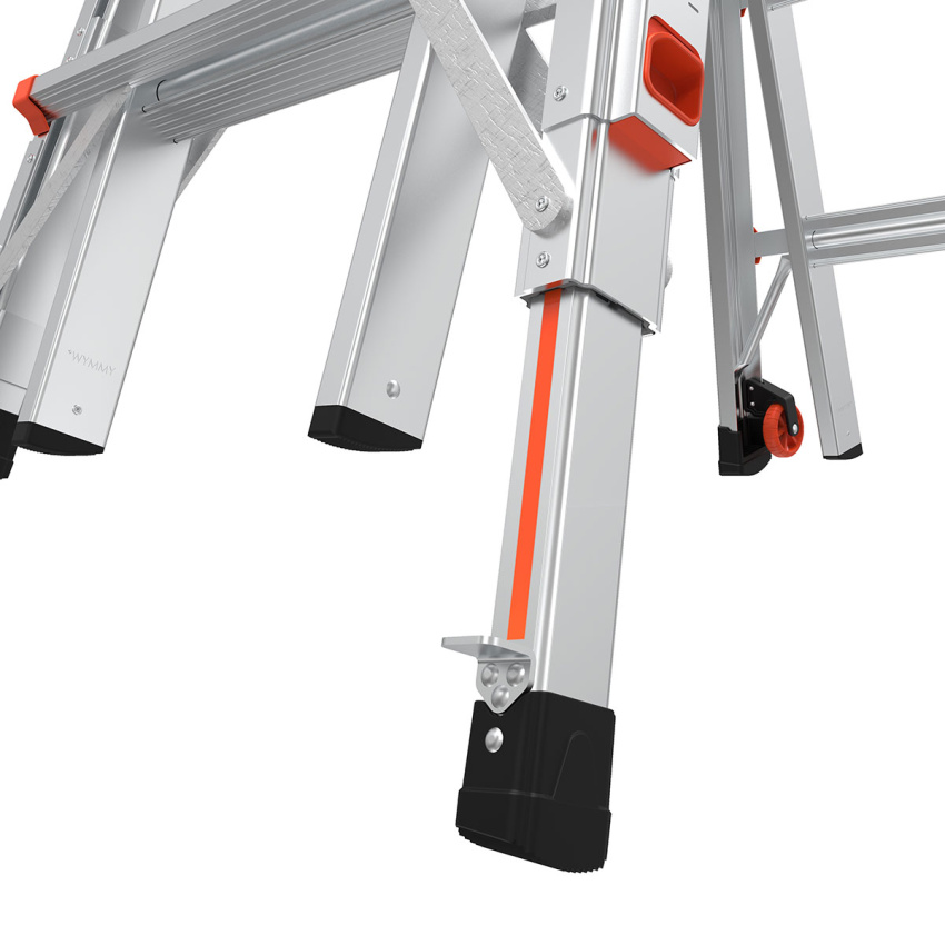 Nerovnoměrný terén? Není problém. S nožičkami Ratchet ™ můžete nastavit nohy žebříku během několika sekund, což vám umožní stabilizovat žebřík na nerovném povrchu. Zatahovací nohy přinášejí více než 18 cm vyrovnání.