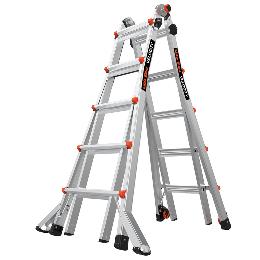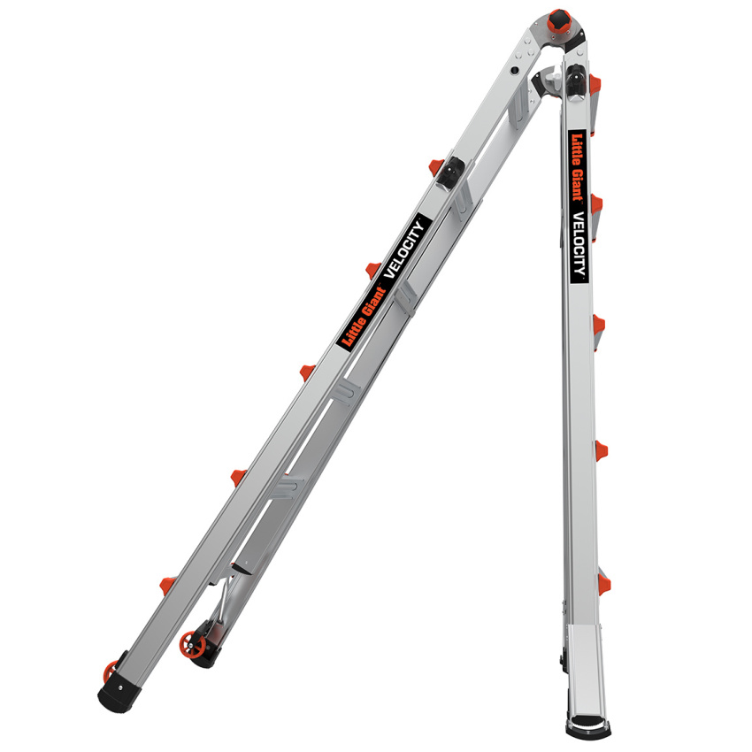 Velocity je lehký, vícepolohový žebřík s přidanými funkcemi, které usnadňují ideální nastavení. Chcete-li upravit výšku žebříku, jednoduše zatlačte seřizovací prvky Rock Lock ™ a posuňte vnitřní část do požadované výšky. Pokud potřebujete přemístit žebřík z místa na místo, sklopte žebřík na kolečka Tip & Glide™ a odvezte jej kam potřebujete.
