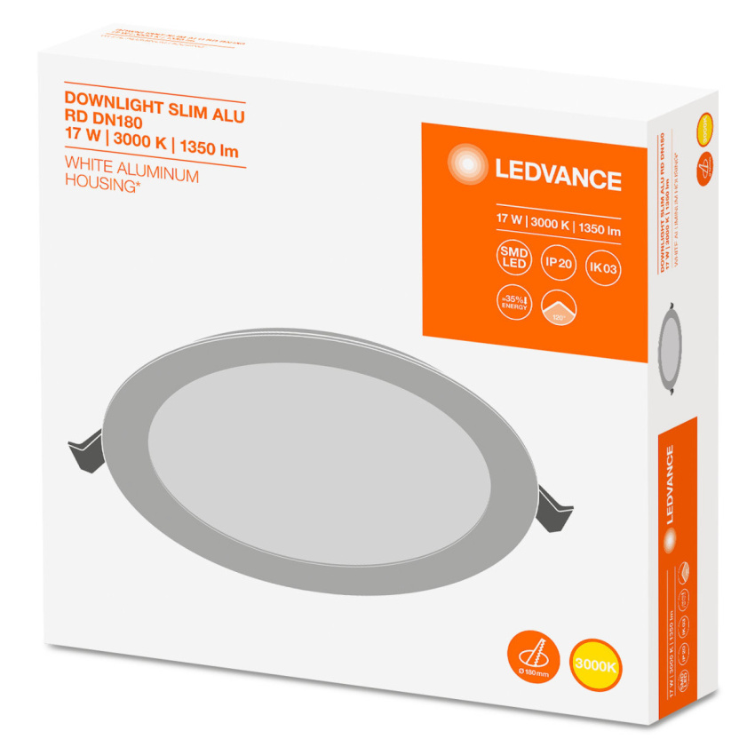 LEDVANCE Svítidlo LED DOWNLIGHT SLIM ALU 180 17W 230V 1350lm 3000K IP20