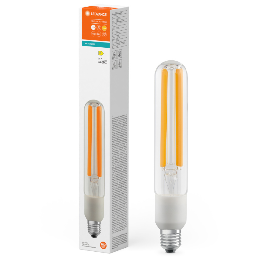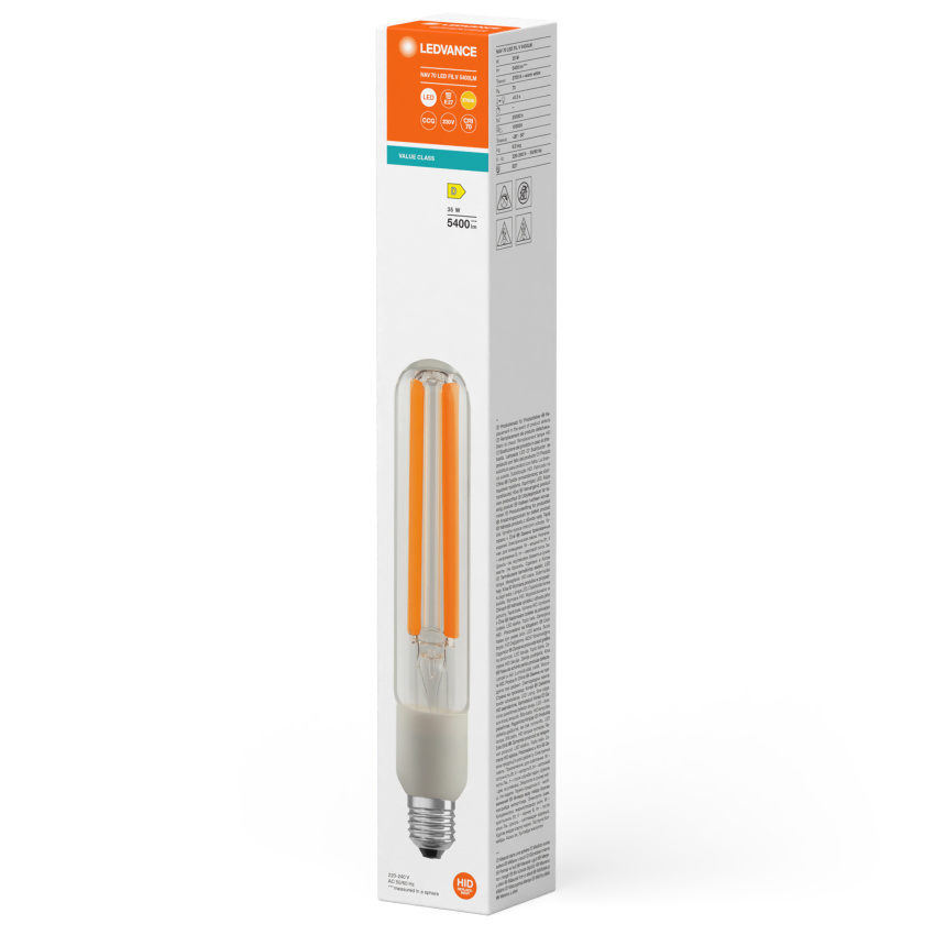 LED náhrada za NAV výbojky v designově orientovaných venkovních aplikacích. Vlastnosti výrobku: Vhodné pro provoz s konvenčním předřadníkem (KP) nebo sítí 230 V AC. Velmi vysoká účinnost až 190 lm/W. Výkonový koeficient: 0,9. Stupeň krytí: IP65. Přepěťová ochrana: až 2 kV (L-N). Výhody výrobku: Stejný design jako tradiční NAV výbojky s čirou, trubicovou celoskleněnou baňkou. Plné využití reflektoru stávajícího svítidla díky vyzařovacímu úhlu 360 stupňů. Při použití jako náhrada za sodíkové výbojky (NAV) šetří až 78 % energie. Okamžitě 100% světla, bez náběhu. Podobné rozdělení světla jako tradiční NAV výbojky. Oblasti použití: Ulice. Plošné osvětlení. Pěší zóny. Parky. Venkovní použití pouze ve vhodných svítidlech.