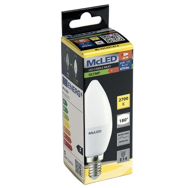 LED žárovka svíčka 4,8W, E14, 2700K, CRI80, vyzař. úhel 180°, Φ use 360° 470lm