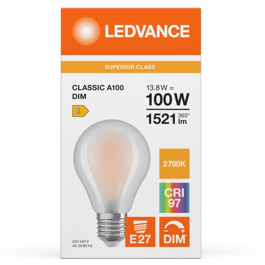LED Classic A 100 Filament DIM CRI97 S 13, 8 W 927 Frosted E27