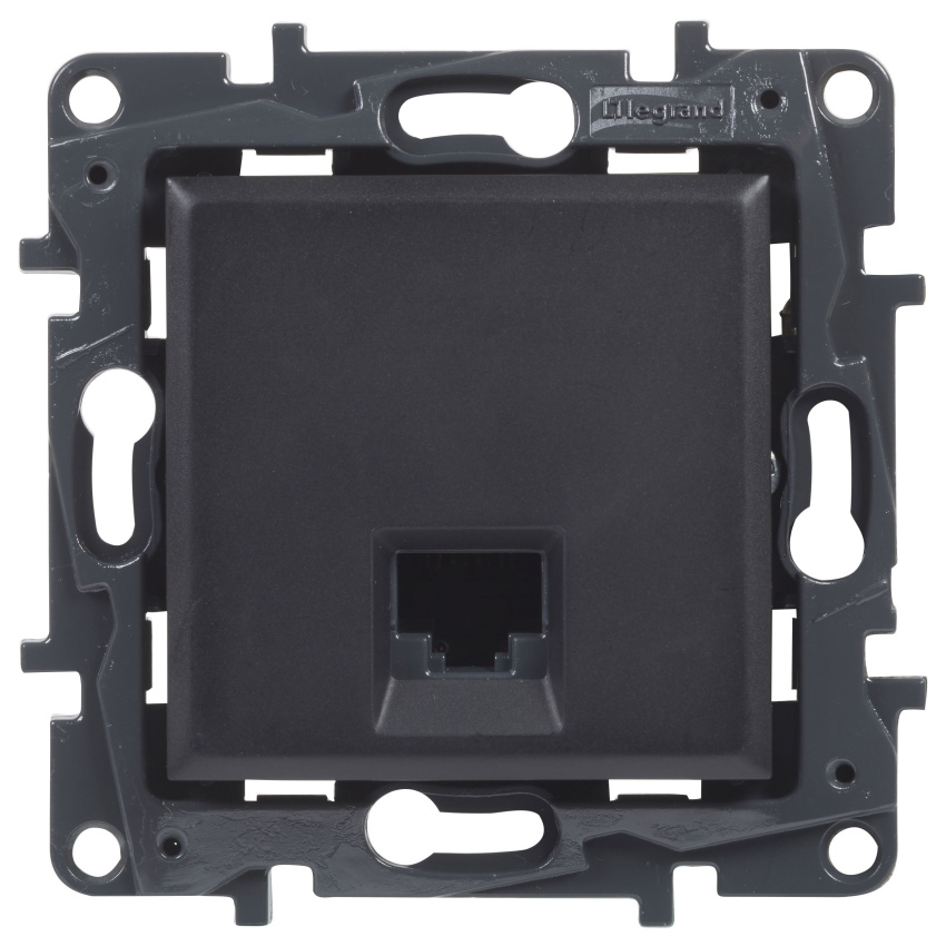 Internetová zásuvka 1xRJ45 cat.6 UTP Legrand Niloé STEP 863563 v matné černé barvě je moderní datová zásuvka pro domovní i kancelářskou instalac s montáží do elektroinstalační krabice typ 68.
