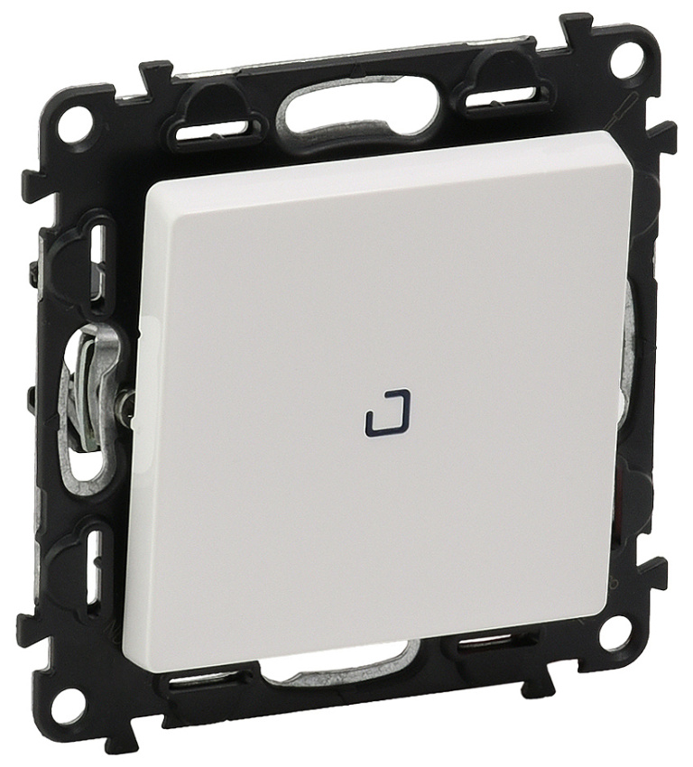 Spínač ř.1 se signalizačním podsvětlením, kolébkový, bezšroubový v bílé barvě. 10 AX, 250 V AC