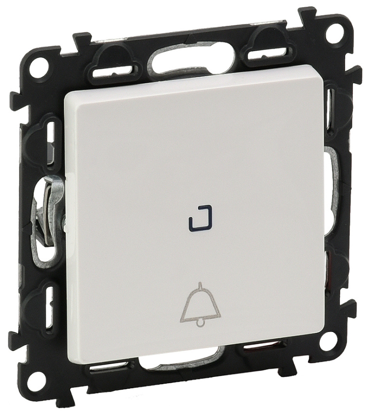 Tlačítko s přepínacím kontaktem a orientačním podsvětlením,symbol zvonku, bezšroubové v bílé barvě. 6A-250V AC