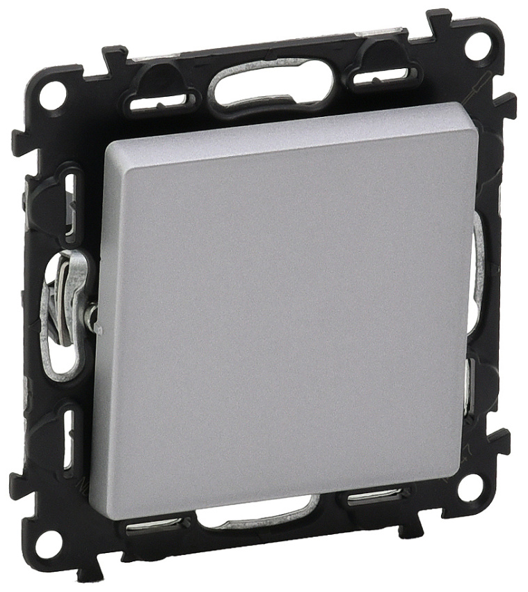 Přepínač křížový ř.7, kolébkový, šroubový ve stříbrné barvě. 10 AX, 250 V AC