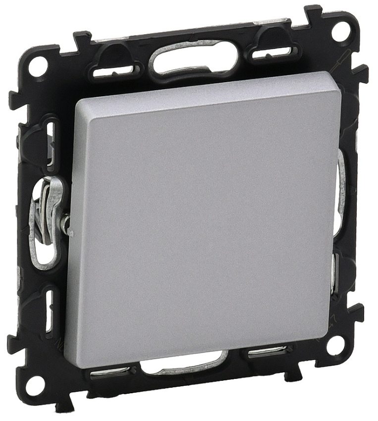 Tlačítko s přepínacím kontaktem, bezšroubové ve stříbrné barvě. 6A-250V AC