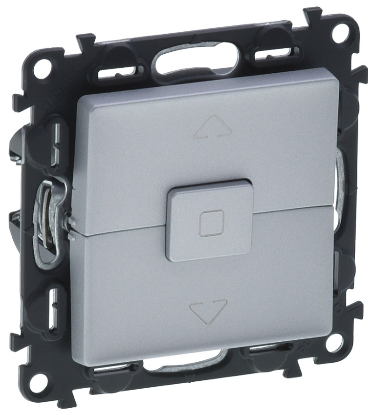 Spínač ovládání, bezšroubový ve stříbrné barvě. 10A-250V AC