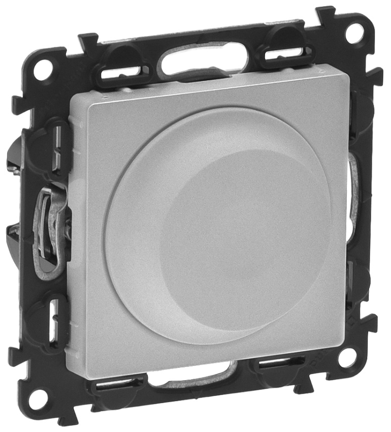 Otočný stmívač bez N vodiče ve stříbrné barvě. 230V AC- 50Hz