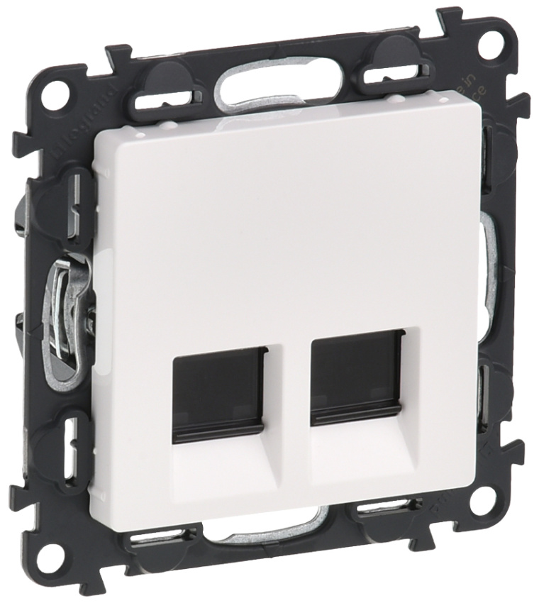 Zásuvka datová 2 x RJ 45 Cat.6 UTP LCS, zapojení bez použití nástroje, v bílé barvě.